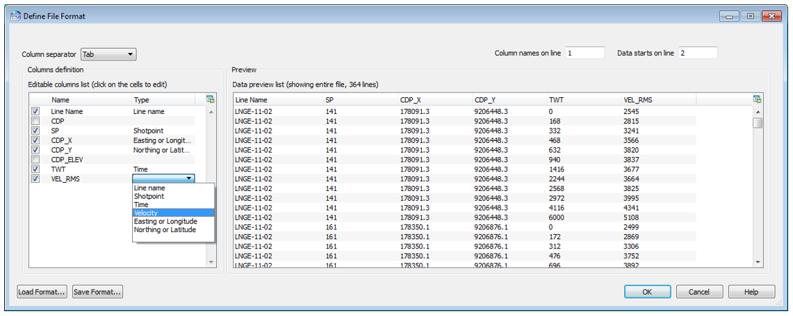 The contractor that sent the stacking velocities may have only sent the file with Inlines/Xlines defined as numbers. – in this case you would add a prefix of “I” to denote an Inline, and then repeat the process for the loading of the Xlines but change it to a suffix of “X”.