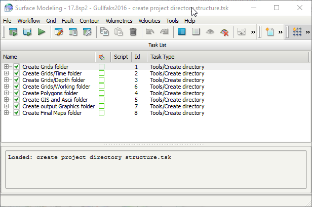 - Geoscience and data management workflows stored in task files can be set up to automatically generate grids, or import grids and GIS data, to the new subfolders.