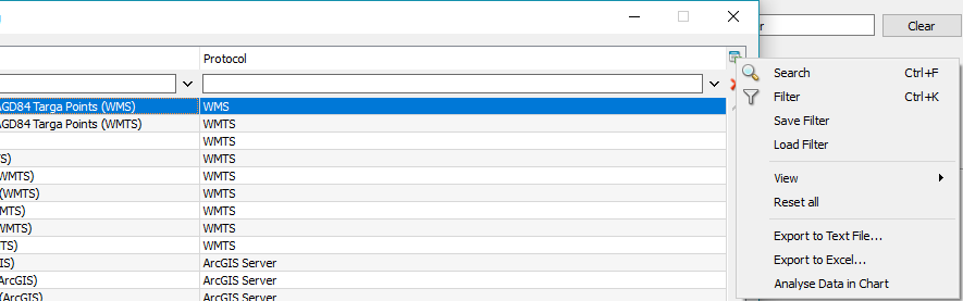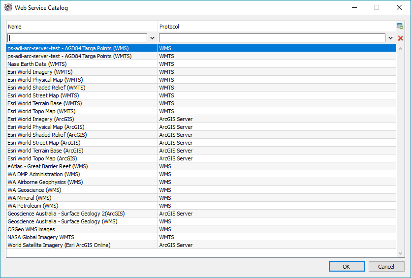 Tip: as in any other list in Petrosys, you can use the search/filter options to help locate the right service by name or protocol. This can be handy once your catalog gets large based on many stored services.