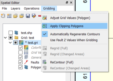 To do that, select the grid in the Editor, go to the Gridding menu and select Apply Clipping Polygons and refresh the display. Note you may need to select the ReContour (Full) option if the option to automatically regenerate the contours is disabled.