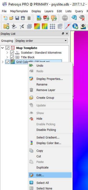 Alternatively, you can select the grid from the Display List or the mapping canvas, click the right mouse button and select Edit…