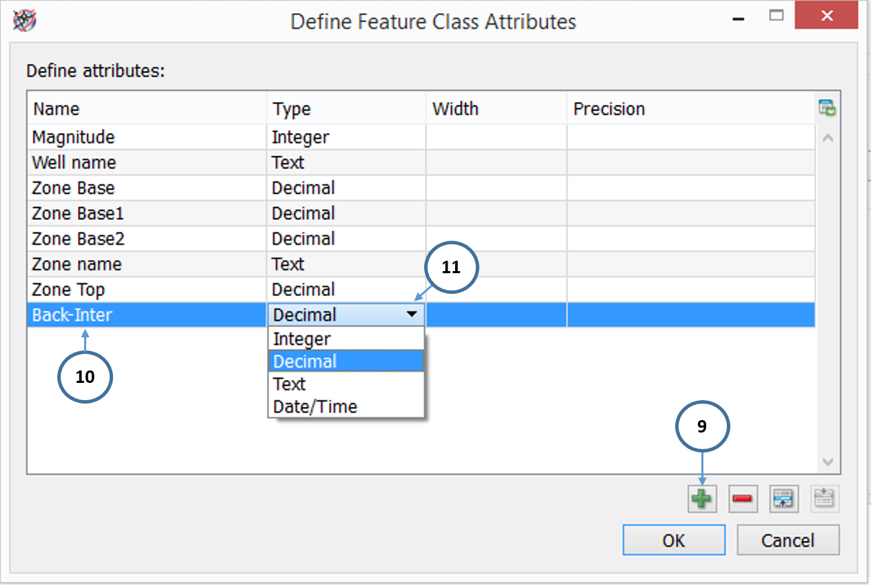 - Select the Type column for the new attribute and use the drop down menu to set the type to Decimal