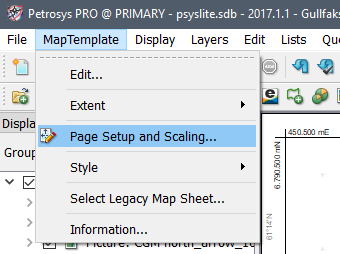 Double click on the Map Template layer in the display list and click on the ‘Page setup and scaling’ tab. Alternatively go to the Map Template menu and select “’Page Setup and Scaling’…