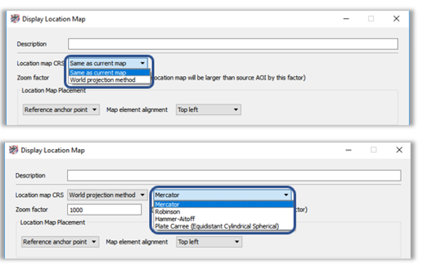It also brought the possibility not only to project the location map to the same projection applied to the map, but also provided the users the flexibility to apply a projection of their choice.