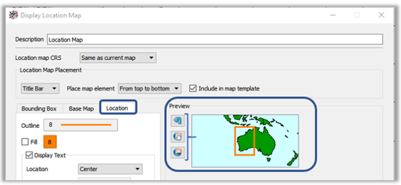 In the following major release, Petrosys PRO 2017.1, we introduced the ability adjust interactively the area of interest rather than being based on a scale factor from the current map. This allowed the location map to be placed in the best position to indicate the position of the map relative to surrounding geography.
