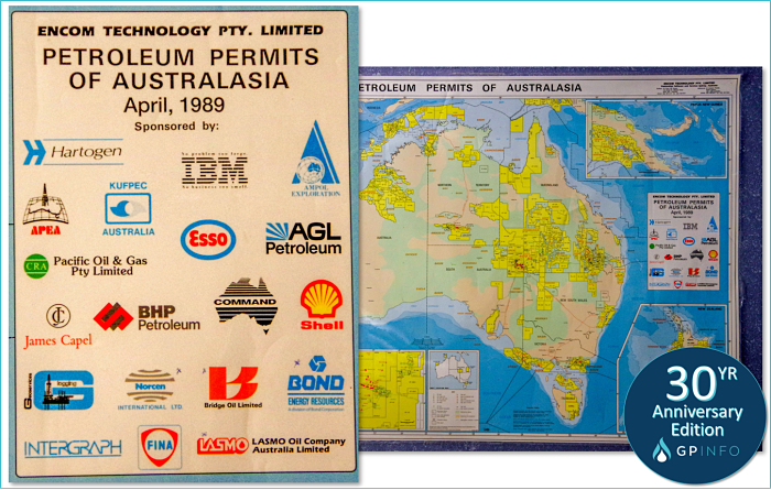 In 1989, Encom Technology a small software house based in Sydney produced their first permits map which would begin a 30-year journey developing into what we now know today as the GPinfo Petroleum Permit Map, becoming the definitive source for Australasian Petroleum exploration information.