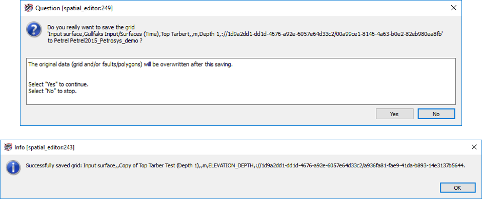 To finalize the process, visualize the generated grid and save it in the Spatial Editor. A prompt will ask you if you wish to overwrite the data. Once you click ‘Yes’, another prompt will let you know the grid was saved successfully.