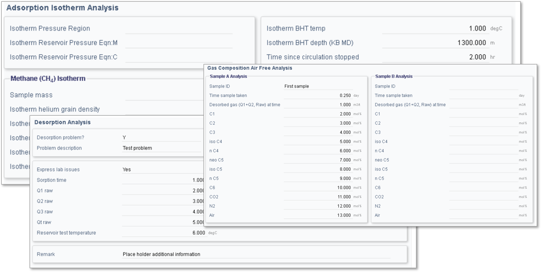dbMap®/Web 2019.3 incorporates support for storing detailed information for Samples and several analysis types including; Adsorption isotherm, Desorption, Gas composition, Isotope and more.