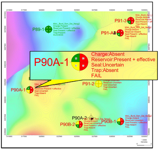 Stop-light style displays, incorporating success and failure analysis results for wells are now even more easily created inside Petrosys PRO, making it very easy to visualise and analyse risk spatially.