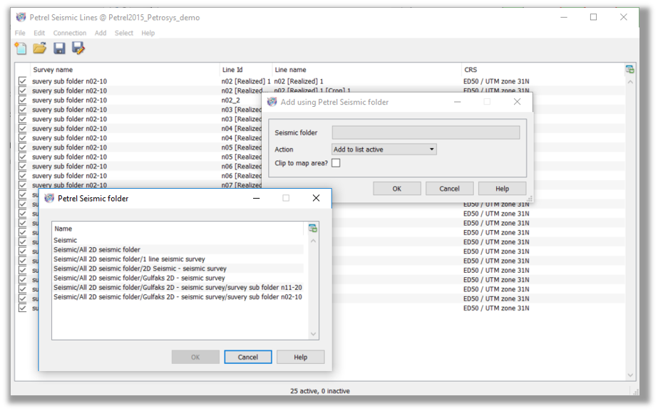 Finally, Petrosys PRO 2017.1 allows you to filter 2D Seismic data in Petrosys PRO based on Petrel Seismic folders. The subset of lines can be saved as a line selection file for display, gridding and data transfer.