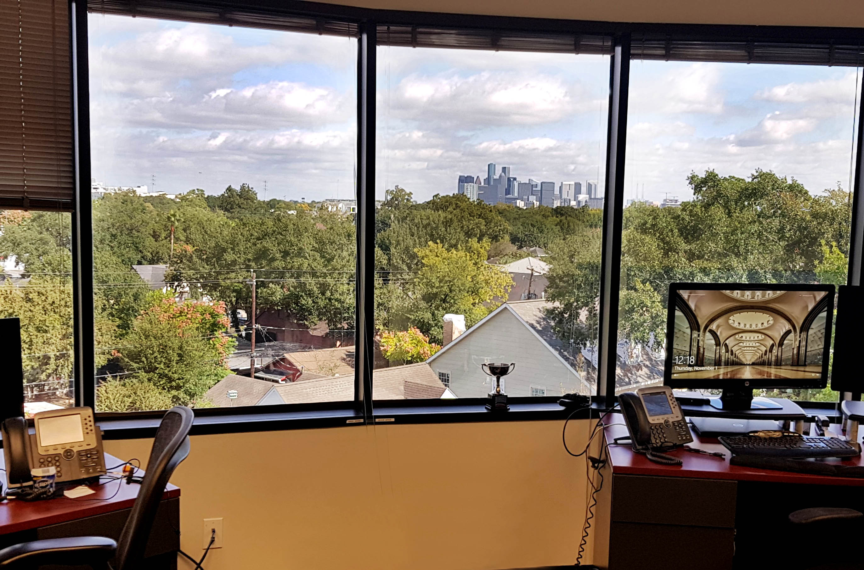 Petrosys USA is now just a short hop from Houston’s Rice Village in the IBC Bank Building, where we have a great view of the Houston Downtown skyline: