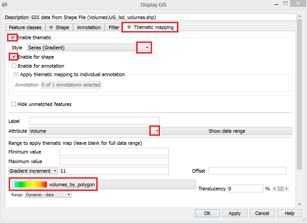 The shapefiles can then be displayed with annotation and thematic coloring in the Display/GIS option, or be passed on to other applications. Attributes include labels for fluid type and area and volume units, so that a comprehensive range of annotations is possible.