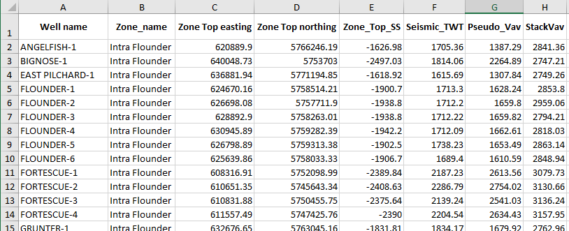 Graphic 1. Spreadsheet file containing multiple formation tops across several sheets.