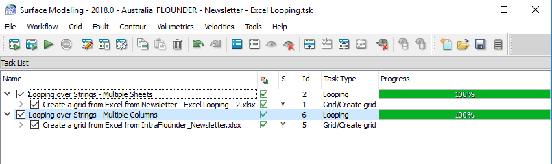Introduced in Petrosys PRO 2017.1Â to help users save time and streamline their workflows, tasks in Surface Modeling containing Excel spreadsheets can now be scripted and looped. This considerably reduces the length of workflows, as it can replace many steps.