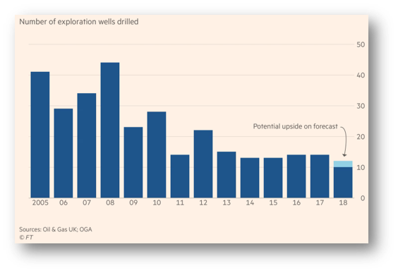 Before looking at what the differences are, it would make sense to ask why we are interested. After all, if there’s no industry requirement to make production maps then the differences are not really relevant in practice. However, this doesn’t seem to be the case. If anything, the opposite is the case, where the big drive at the moment is to maximise recovery through production, rather than discover more hydrocarbons through exploration. For example, Figure 1 shows the number of exploration wells drilled in the North Sea. It’s fairly clear that the number of exploration wells is dwindling.