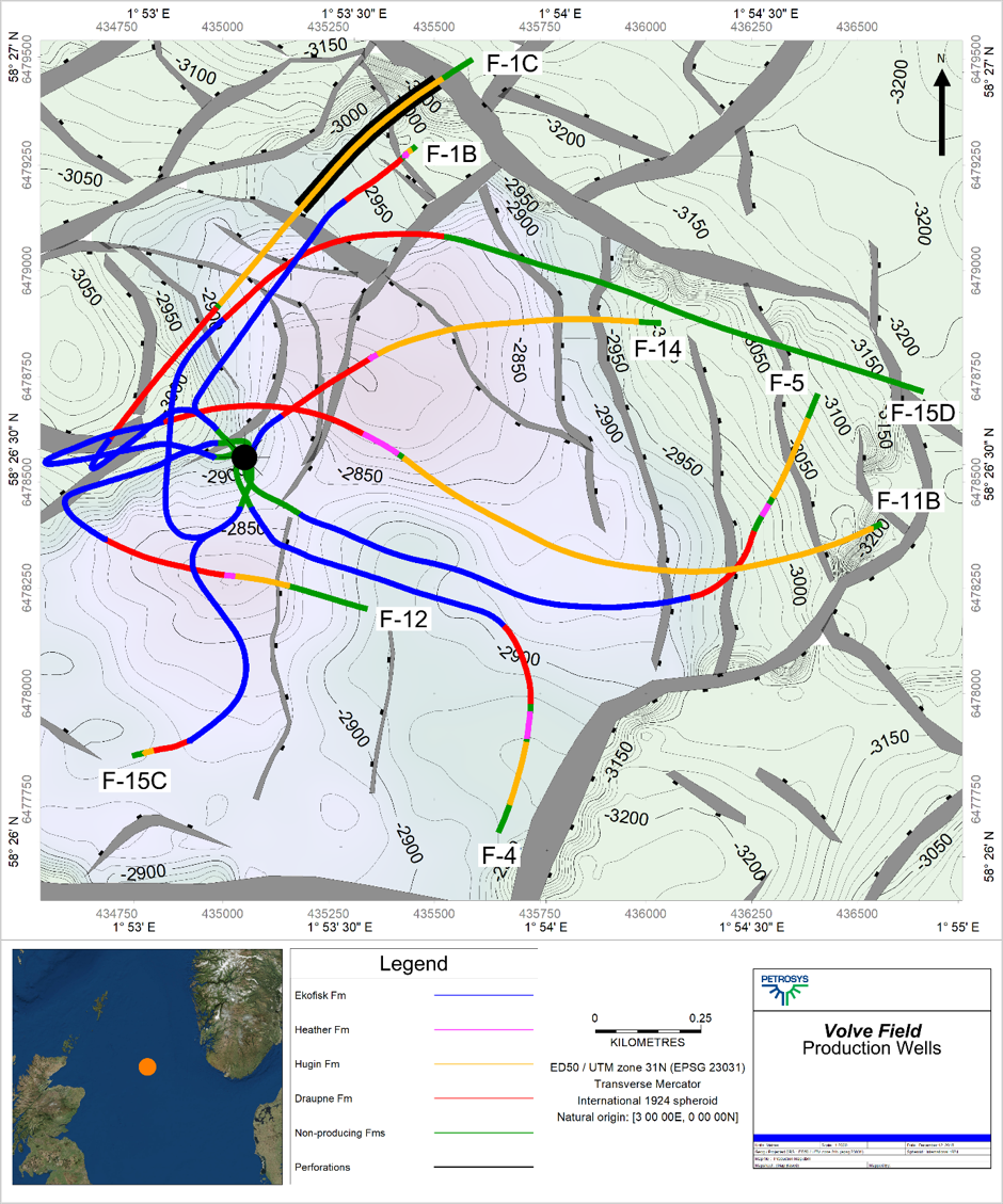 - This was perhaps one of the most surprising aspects to me as I started to look at examples of production maps. Although the structure of a trap does tend to be shown, it’s often made bland or faded into the background in such a way that your eyes are not immediately drawn to it. Again, the most important feature is the well information. What the structure looks like is kind of irrelevant by this stage (as far as presenting on maps at least) as we know it exists and we know it has trapped hydrocarbons.