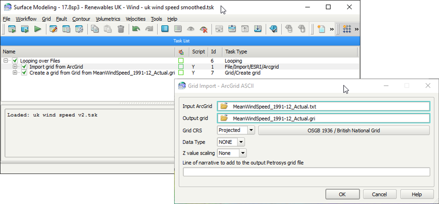 - Import the ASCII grid to a Petrosys grid. The second task here smooths the input data which was noisy.