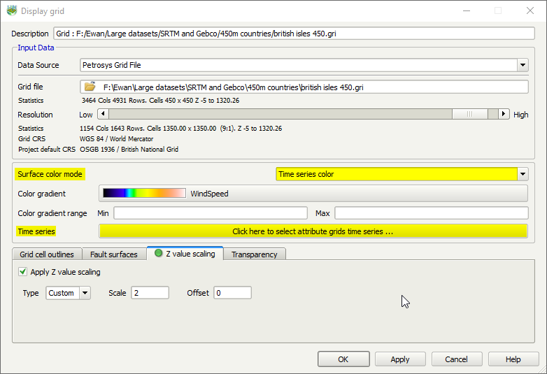 - Set the Surface color mode option to Time series color and select a suitable Color gradient.
