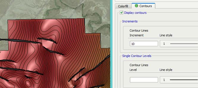 The introduction of a “Contour” tab within the Grid and Seismic Surface display options in Petrosys Mapping means that contours can be computed and displayed directly on the gridded surface.